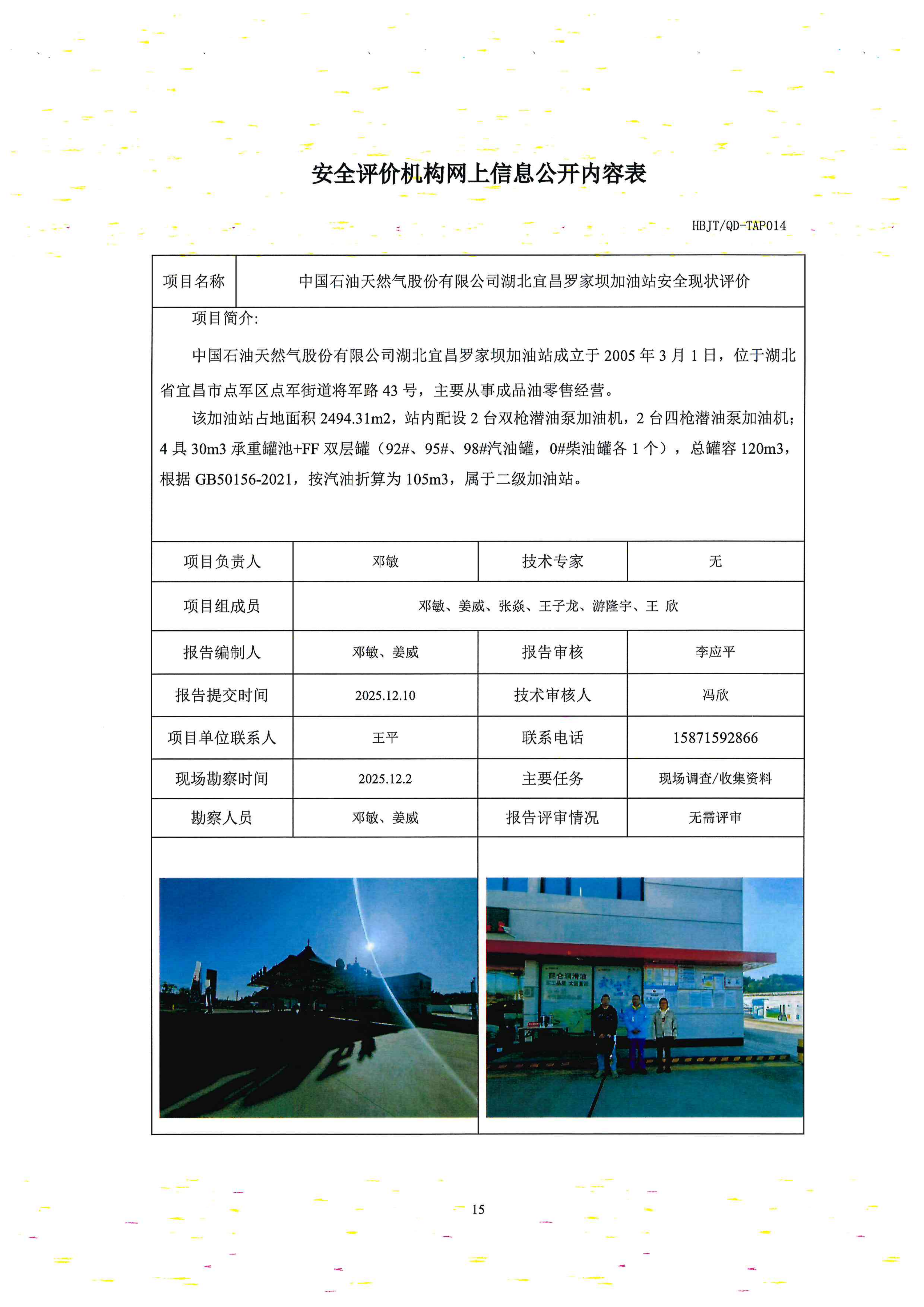 中國石油天然氣股份有限公司湖北宜昌羅家壩加油站安全現(xiàn)狀評價